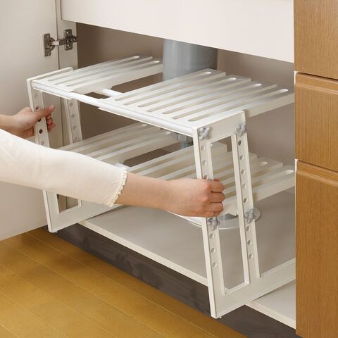 シンク下収納 Belca シンク下フリーラック 2段伸縮タイプ ホワイト MT2-EX | シンク下収納 50~75cm ラック キッチン収納 伸縮ラック 2段 流し台 シンク下ラック キッチン 収納棚 パイプ避け 配管避け 洗面台下 洗面下 組立 すっきり ベルカ