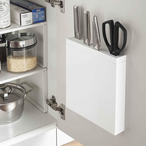 山崎実業 包丁たて tower タワー 包丁&キッチンばさみ差し ホワイト 3848 | 包丁差し シンク扉 キッチンばさみ デッドスペース おしゃれ シンプル 収納