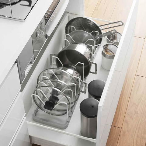 フライパンやフライパンカバーを使いやすく立てて収納できます。