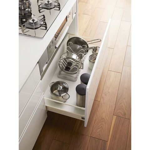 鍋やフライパンのサイズに合わせて、仕切りパーツの位置は3cmごとに調整可能。