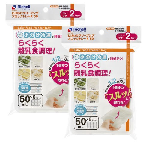 リッチェル 離乳食 冷凍保存 容器 わけわけフリージング ブロックトレーR 50 1ブロック50ml 2セット入り×2個 93872 | 小分け 保存容器 作り置き 冷凍容器 ストック 冷凍トレイ ケース