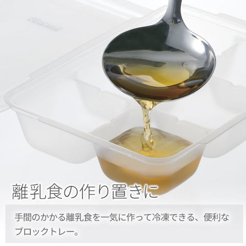 すりおろし野菜、きざみうどん、おかゆ、だし汁、スープなど、いろいろな食材の離乳食が入れられます。