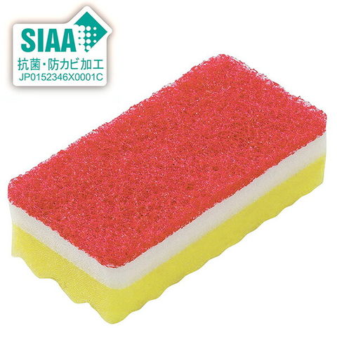 ソフトでキズつきにくい不織布と、泡立ちのよいしっかり洗えるスポンジ、水切れのよいスポンジを貼りあわせた三層構造です。