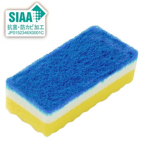 ソフトでキズつきにくい不織布と、泡立ちのよいしっかり洗えるスポンジ、水切れのよいスポンジを貼りあわせた三層構造です。