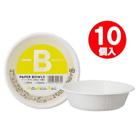 紙皿 BASICS ペーパーボウル 280ml ホワイト 10個入 P2810BA | 使い捨てボウル ペーパーボウル ペーパートレイ
