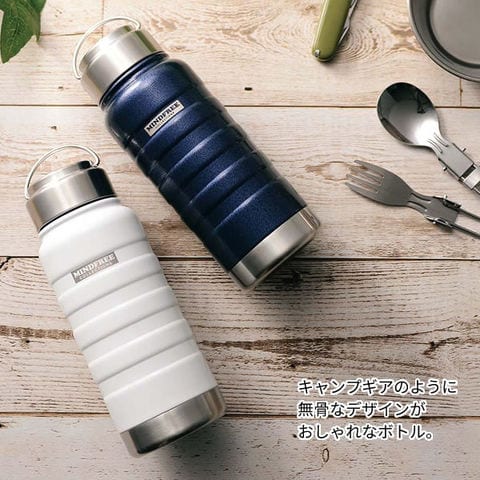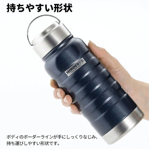 水筒 真空二重ステンレスボトル 550ml ネイビー MF-05 | MINDFREE マインドフリー アウトドア おしゃれ ハンドル付き 携帯マグ 保温 保冷 ボトル スクリューキャップ キャンプギア シンプル かっこいい