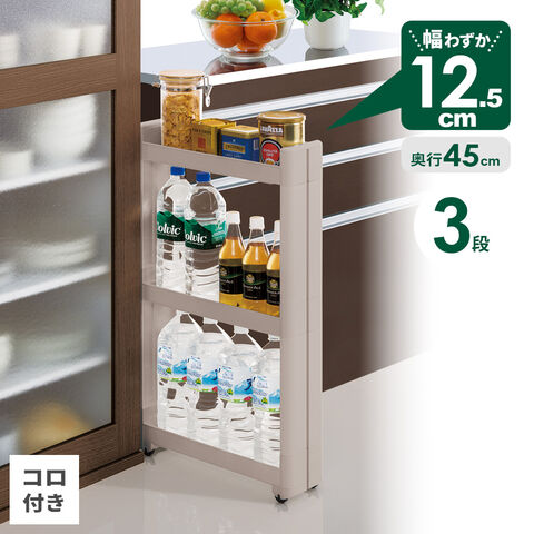 スリムワゴン スマートワゴンFit 45 3段 幅12.5cm グレー F-2544 | 隙間ラック 収納ワゴン 移動 キャスター 調味料ラック 省スペース キッチン収納 薄型 12.5cm 隙間収納棚