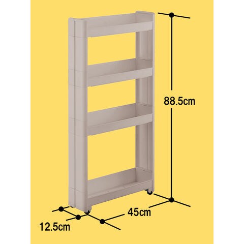 スリムワゴン スマートワゴンFit 45 4段 幅12.5cm グレー F-2545 | 隙間ラック 収納ワゴン 移動 キャスター 調味料ラック 省スペース キッチン収納 薄型 12.5cm 隙間収納棚