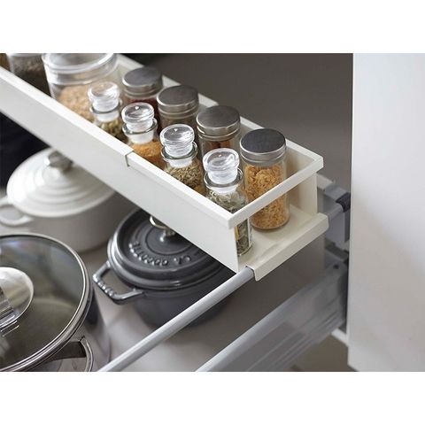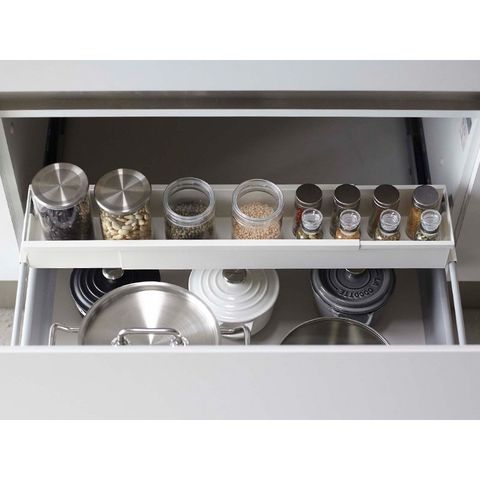 引き出しの幅に合わせて配置できる伸縮ラック。