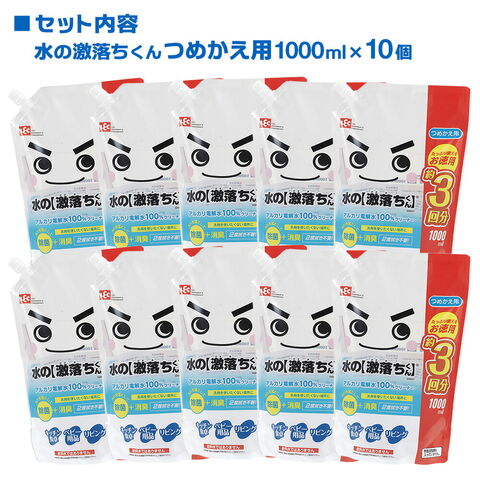 つめかえ用 水の激落ちくん 詰替 1000ml ×10個(ケース販売) S00557 | まとめ買い アルカリ電解水 除菌 消臭 1リットル 掃除 キッチン ベビー用品 リビング 油汚れ 日本製 箱買い 大容量
