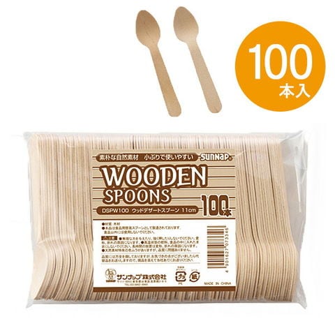 木製スプーン ウッドデザートスプーン 11cm (100本入り) DSPW100 | 木製デザートスプーン ウッドスプーン 使い捨て お弁当 ランチ デザート ホームパーティー バーベキュー キャンプ アウトドア お誕生会