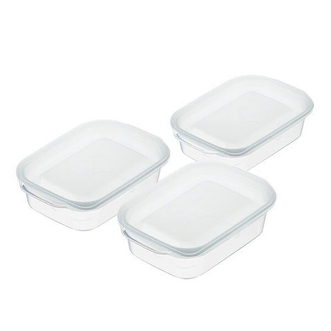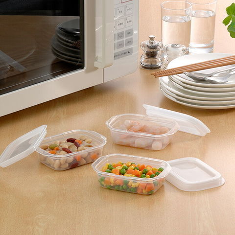 保存容器 楽ちんパック 角型 140ml クリアーホワイト 3個組 1833 | フードコンテナ フードストッカー プラスチック容器 キャニスター レンジ容器 レンジ調理 角型 洗いやすい 半透明 冷凍