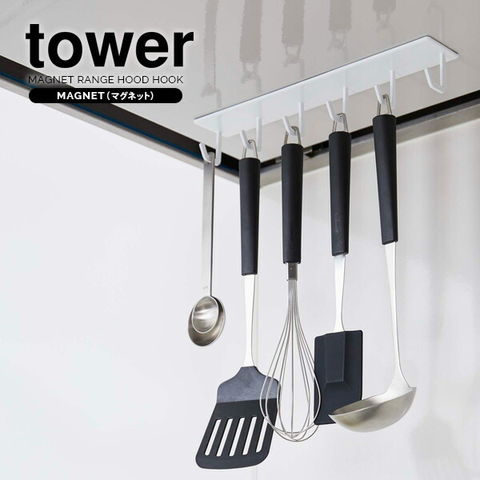 山崎実業 ツールフック tower タワー マグネット レンジフードフック ホワイト 4839 | フック マグネット 磁石 天井 カトラリー レンジフード お玉 ヘラ 吊り下げ 整理 シンプル 貼りつく