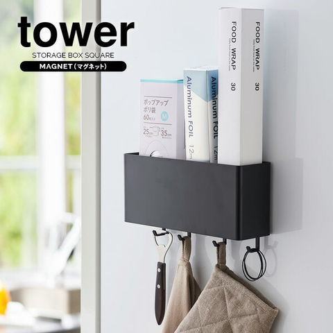 山崎実業 収納ケース tower タワー マグネット ストレージボックス ワイド ブラック 4845 | ストレージボックス マグネット 磁石 壁掛け 収納 小物 整理 フック ワイド シンプル 貼りつく