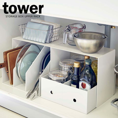 山崎実業 コの字ラック tower タワー 収納ボックス上ラック ホワイト 2個組 5037 | 収納ボックス 2個組 ラック 棚 収納 スチール キッチン 台所 シンプル 丈夫