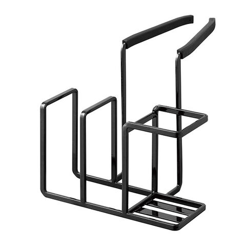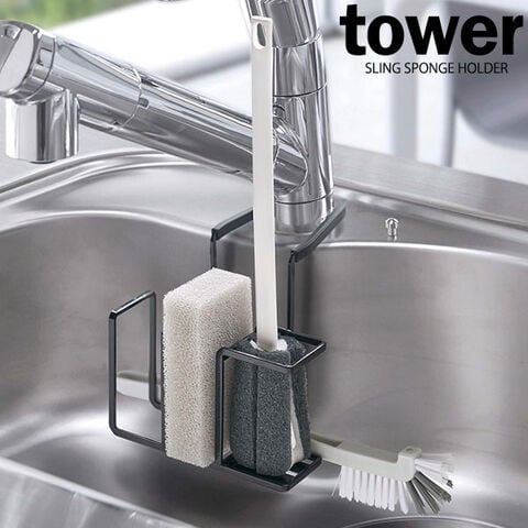 山崎実業 スポンジホルダー tower タワー 蛇口にかける スポンジ&ブラシホルダー ブラック 5081 | スポンジラック スポンジ置き ブラシホルダー ボトルブラシ 挟む シンク周り 水まわり 掃除道具 キッチン小物 蛇口 スチール シンプル 丈夫