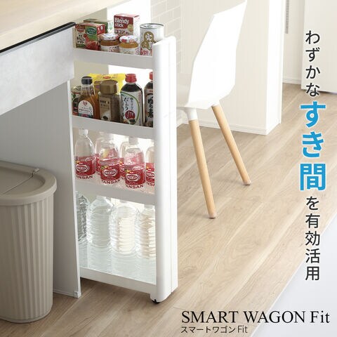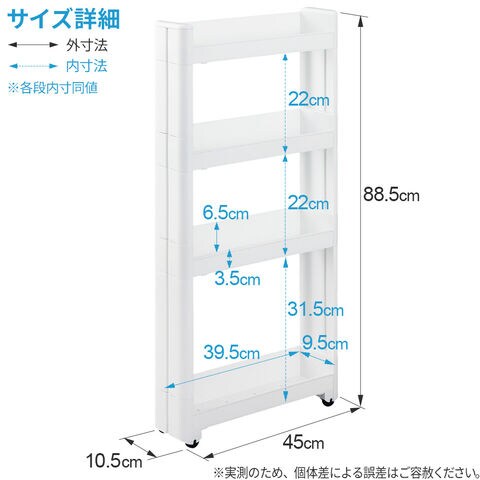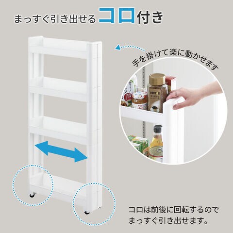 隙間ラック スマートワゴンFit 幅10.5×奥行45×高さ88.5cm 4段 ホワイト F-2571 | スリムワゴン すきま 収納ワゴン キャスター 移動 日本製 プラスチック 調味料ラック 省スペース キッチン収納 薄型 約11cm 洗面所 スリム すきまラック