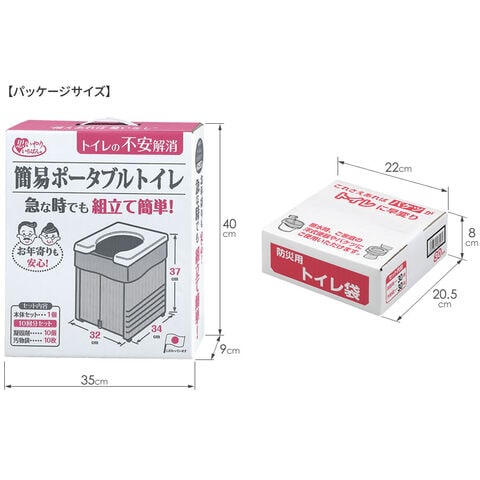 簡易ポータブルトイレ:便座×1個、本体×1個、凝固剤×10個、汚物袋(50×65cm)×10枚