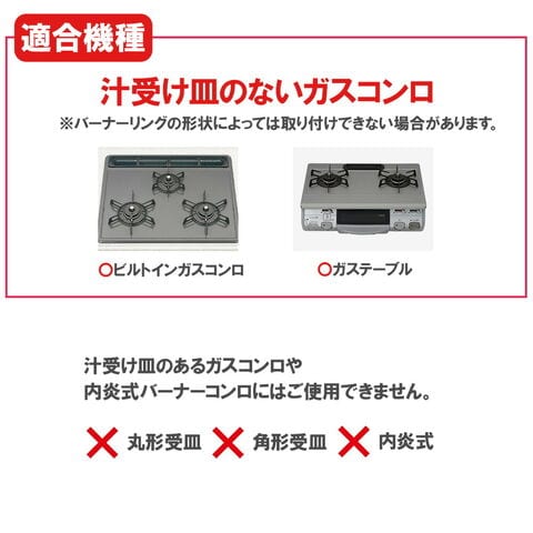 ほとんどの機種に対応汁受け皿のない個別ゴトクガスコンロであれば、ほとんどの機種に対応します。