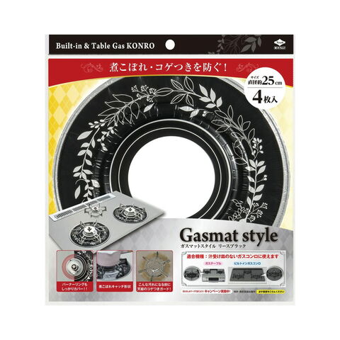 汚れ防止 ガスマット style リースブラック 4枚入 3124 | ガスコンロ コゲつき 煮こぼれ 吹きこぼれ ガード カバー 五徳 置くだけ キッチン 消耗品 掃除 新居 新生活 1人暮らし