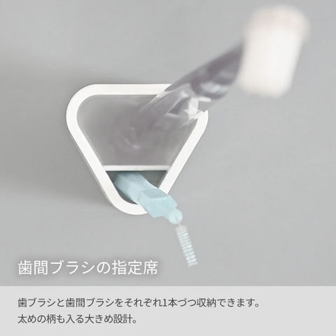 歯ブラシと歯間ブラシをそれぞれ1本づつ収納できます。太めの柄も入る大きめ設計。