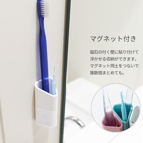 歯ブラシ立て 歯間ブラシ用ポケット付き 歯ブラシスタンド ブルー ×2個セット | おしゃれ はぶらし 立て 収納 歯間ブラシ 入れ マグネット 磁石 取り付け 歯磨き ハミガキ ケース 洗面所 浴室 風呂 プリスベイス
