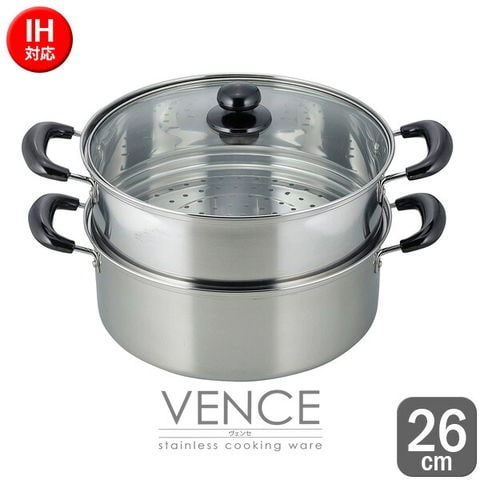 ヴェンセ IH対応 二段蒸し器 26cm VR-8182 | 蒸し鍋 蒸す 鍋 ふかす 調理鍋 むし料理 むす 赤飯 もち米 茶碗蒸し プリン シュウマイ 豚まん