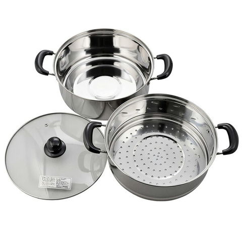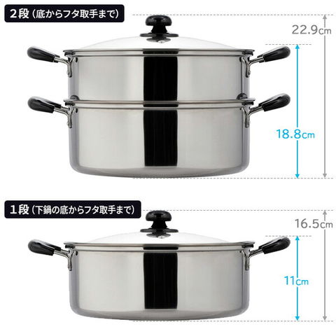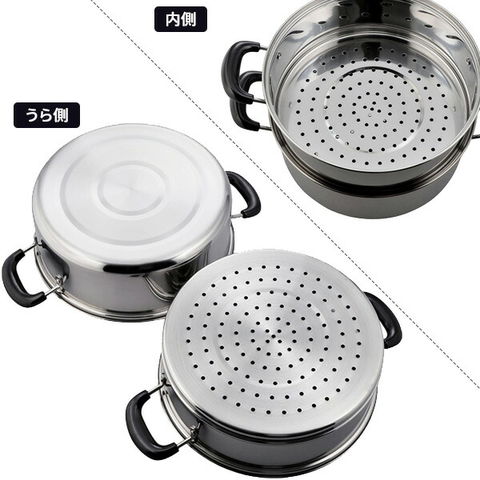 ガスコンロでも、IHクッキングヒーターでも使えるステンレス製の二段蒸し器。