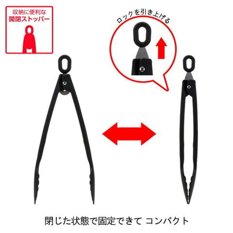 ストッパーでトングを閉じた状態に固定可能。収納に便利です。