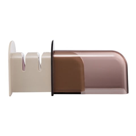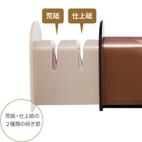 荒砥・仕上砥の2種類の研ぎ部をそなえた、コンパクトなスライド式研ぎ器。