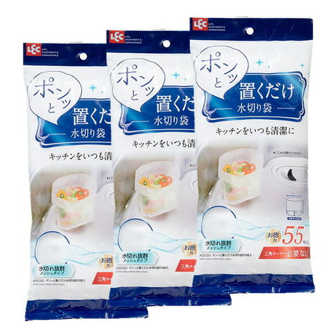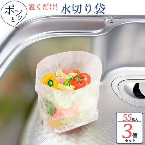ポンッと置くだけ水切り袋 55枚入×3個セット K00393 | 水切りネット 自立 立つ みずきり ネット シンク 生ごみ 使い捨て 使い切り 三角コーナー 清潔 衛生 まとめ買い キッチングッズ