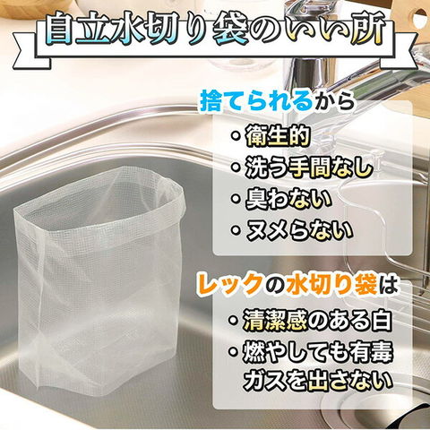 置くだけで、袋が自立する水切り袋。清潔感のあるホワイトカラー。