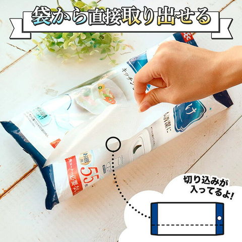 切り込みが入って取り出しやすい!毎日使える大容量55枚入りです。