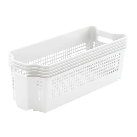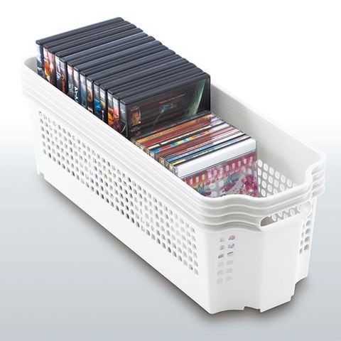 収納ケース スタックカーゴ スリム 浅型 幅19×奥行49.4×高さ17.7cm ホワイト F2522 | プラスチック 収納カゴ かご 白 バスケット 積み重ね スタッキング 整理 浅い DVD CD