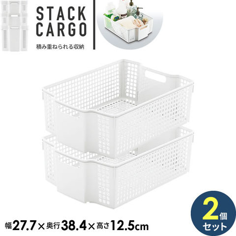 収納ケース スタックカーゴ A4 幅27.7×奥行38.4×高さ12.5cm ホワイト ×2個セット F2525 | プラスチック 収納カゴ かご 白 バスケット 積み重ね スタッキング 整理 深い 台所
