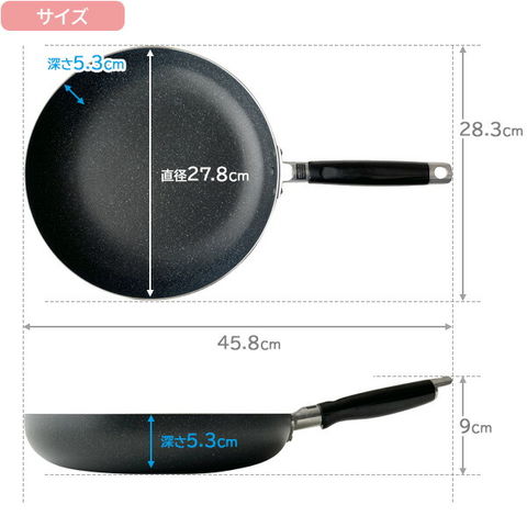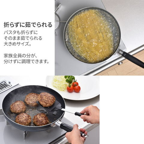 4層特殊フッ素樹脂加工で料理がこびりつきにくいフライパン(28cm)です。