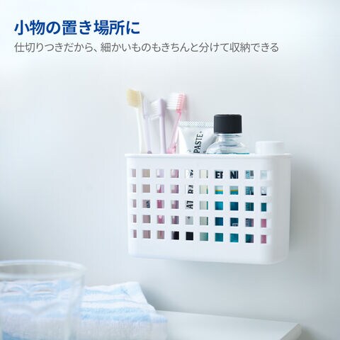 玄関やロッカーで大活躍Sサイズは仕切りが1枚付属しているので、ハンコやリップクリーム、ペンや鍵など、すぐに使いたい小さなものを収納するのにピッタリ。