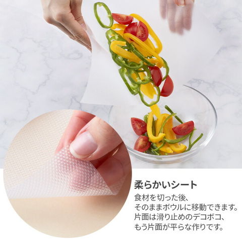 柔らかいシートなので、食材を切った後、そのままお皿やボウルに移せます。