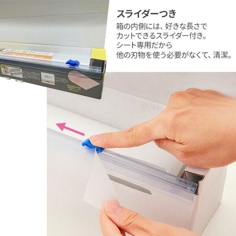 箱の内側についた左右にすべるスライダーで、好きな長さ(サイズ)にカット出来ます。