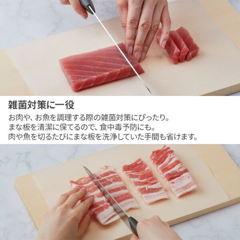 お肉や、お魚を調理する際の雑菌対策にぴったり。まな板を清潔に保てるので、食中毒予防にも。