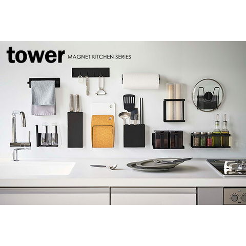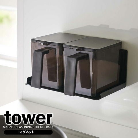 山崎実業 tower タワー マグネット 調味料ストッカーラック ブラック 5133 | キッチン収納 調味料ラック マグネット 収納ラック 調味料スタンド 冷蔵庫横 磁石 壁掛け 壁面収納 シンプル