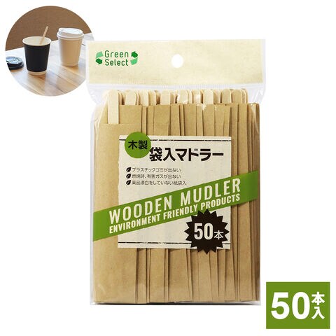 グリーンセレクト 木製 袋入マドラー 14cm 50本 60310 | 使い捨て 使い切り シンプル カフェ アウトドア 来客 衛生的 シンプル おしゃれ ナチュラル 混ぜる