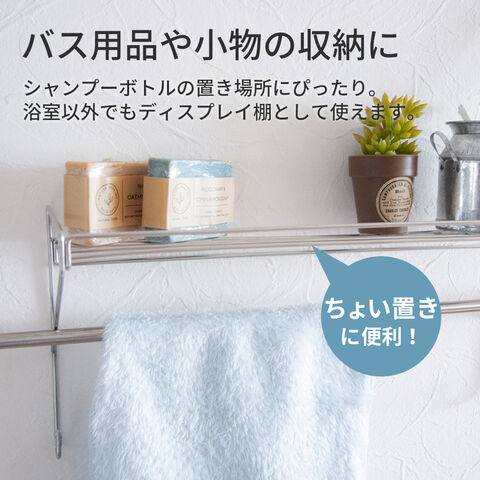 お風呂 ラック そのまま取付けられるタオルバーシェルフ | 棚 シェルフ バスラック 収納 差し込むだけ 置くだけ 浮かせる ステンレス 簡単設置 タオル掛け タオルバー お風呂 浴室 洗面所 トイレ ボトルラック 小物置き ドライヤー収納 収納アップ