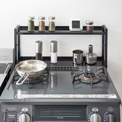 ガスコンロ奥の隙間を便利な収納スペースにできるラック。