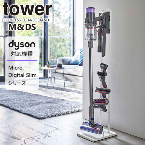 山崎実業 tower タワー コードレスクリーナースタンド M&DS ダイソン SV21 SV18 ホワイト 5330 | マイクロ デジタルスリム 掃除機 スタンド 収納 dyson 省スペース シンプル