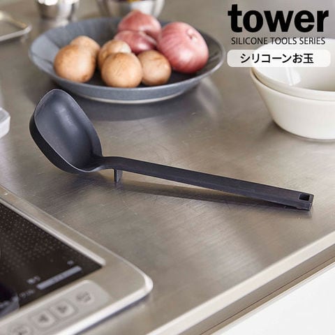 山崎実業 tower タワー シリコーン お玉 ブラック 5190 | おたま レードル シリコン 食洗機対応 キッチン用品 キッチンツール 調理器具 料理 調理 メモリ付き シンプル おしゃれ