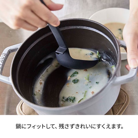 鍋にフィットして、カレーやシチューなども残さずきれいにすくえるお玉。
