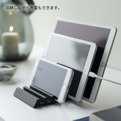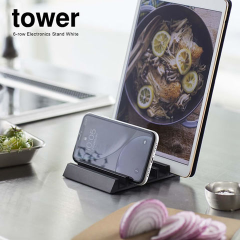 山崎実業 tower タワー タブレットスタンド ブラック 5275 | スマホスタンド スマートフォン 立て 端末 6台 収納 コンパクト おしゃれ