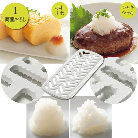 表裏の両面で高さの違う突起を配置してあるので、「ふわふわ」と「シャキシャキ」の、異なる2つのおろしの食感が味わえます。