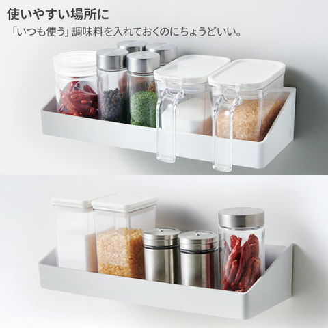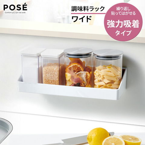 調味料ラック ワイド 吸着シート ホワイト A4102 | スパイスラック 調味料棚 フィルム フィルムフック キッチン 白 白い キッチン収納 台所収納 シンプル 冷蔵庫横 壁面収納 キッチンパネル ポゼ